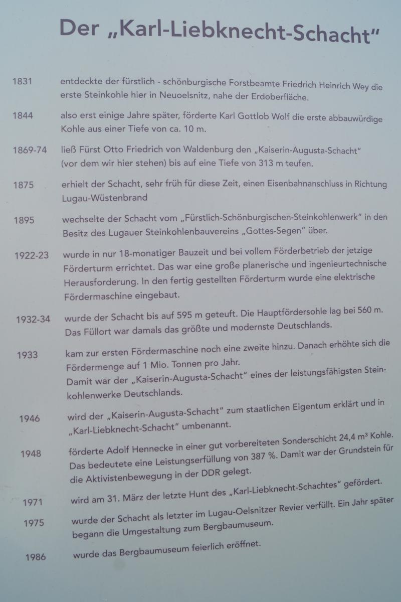 Ab 1976 wurde ein Teil der Tagesanlagen zum Bergbaumuseum „Karl-Liebknecht-Schacht“ umgestaltet und 1986 der Öffentlichkeit übergeben. Auf einer Länge von ca. 400 Metern kann der Besucher vieles über den Bergbau erfahren.