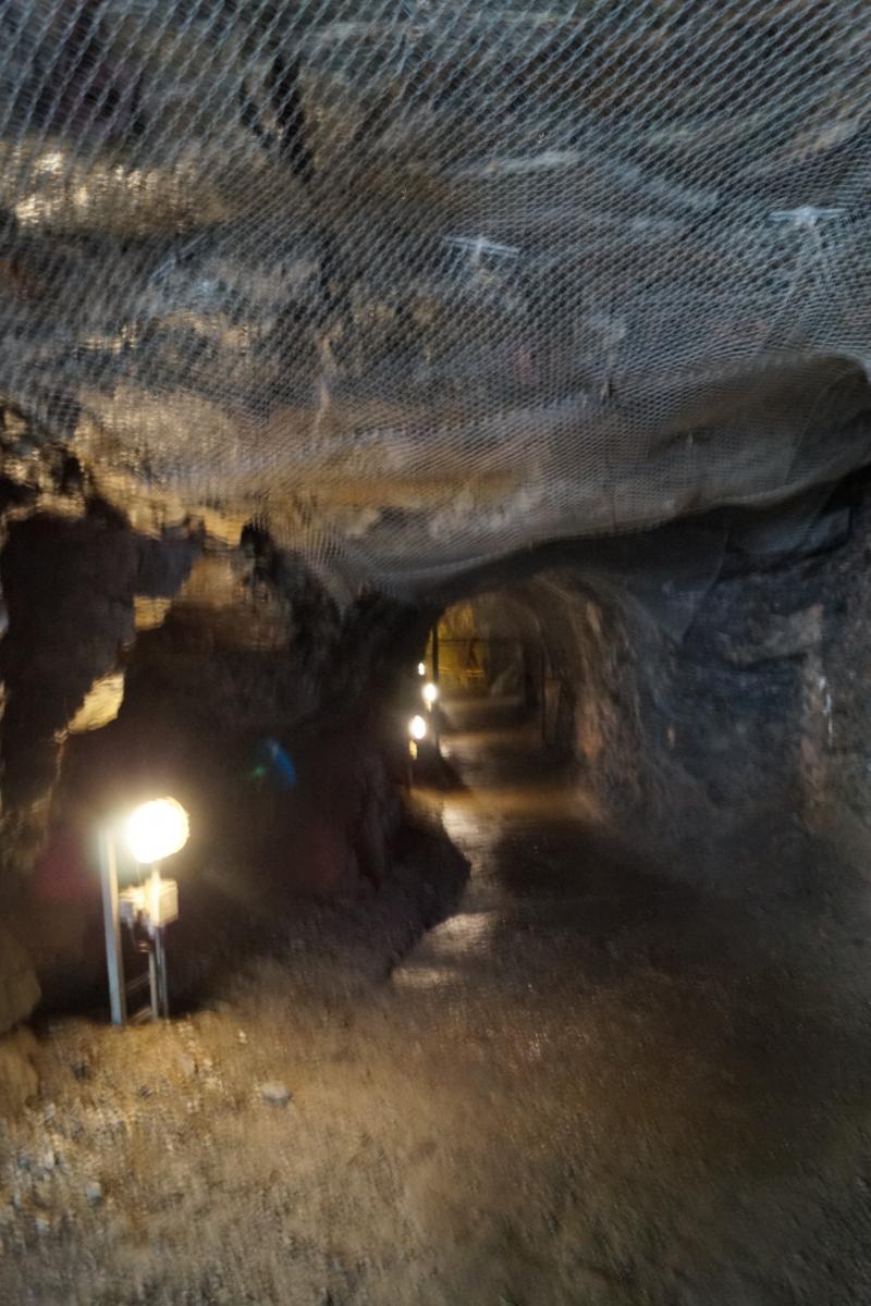 Mit einer Seilfahrtsanlage gelangt man bis in 100 m Tiefe in das Innere des Sauberges.
