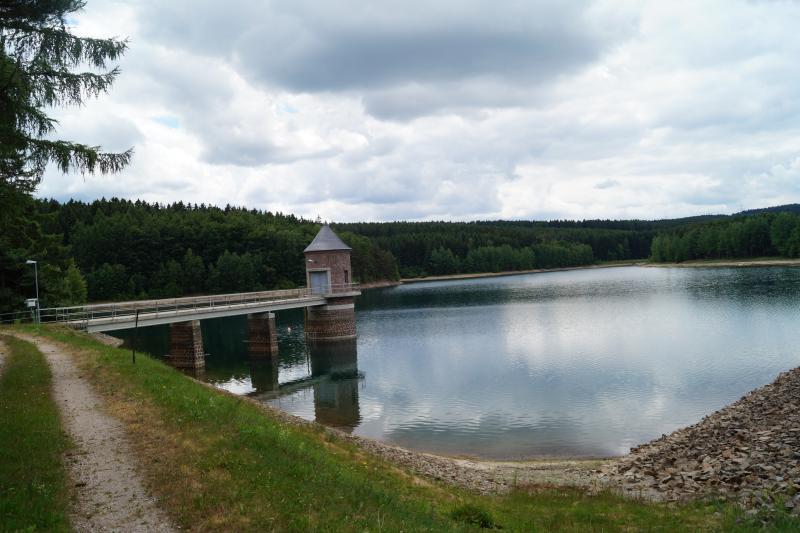 Ein Rundwanderweg führt entlang der Talsperre.