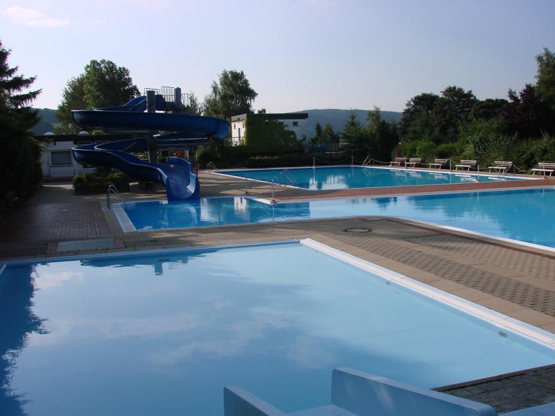 . beheiztes Freibad mit einer konstanten Wassertemperatur von ca. 24 °C